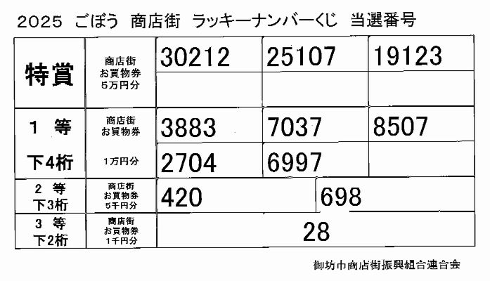 ごぼう商店街 ラッキーナンバークジ イベント