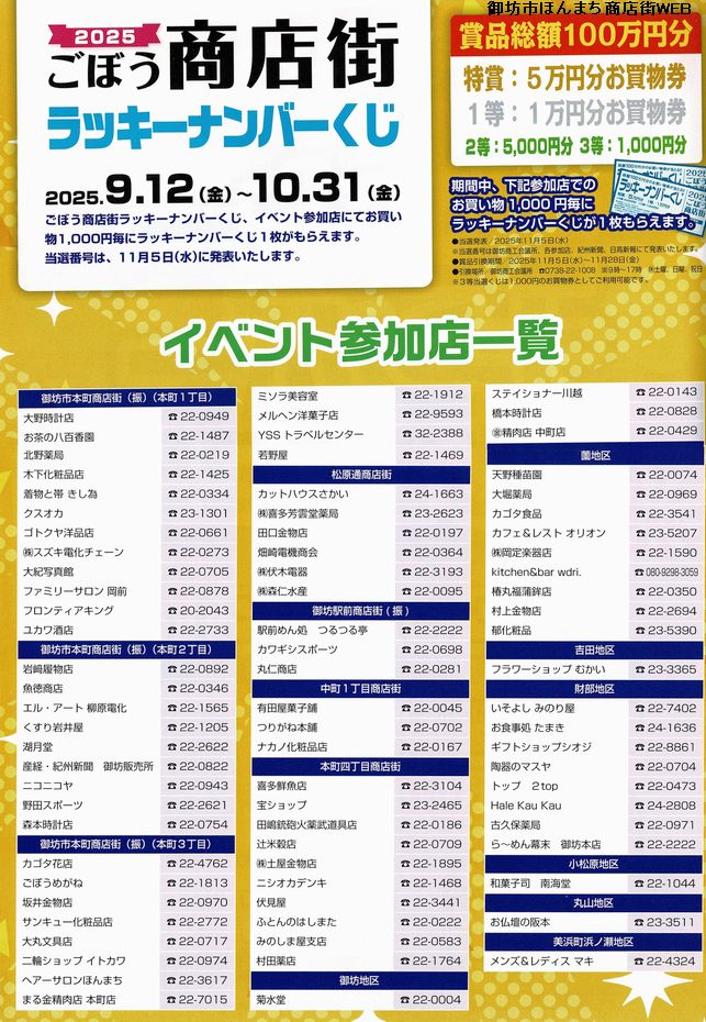 参加各店において1000円お買上げ毎に1枚、番号クジを進呈いたします。